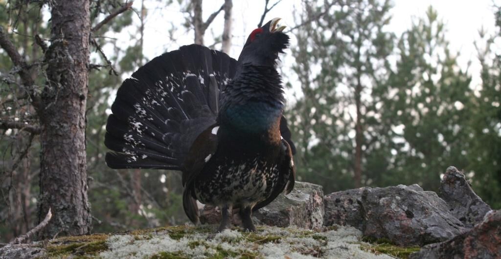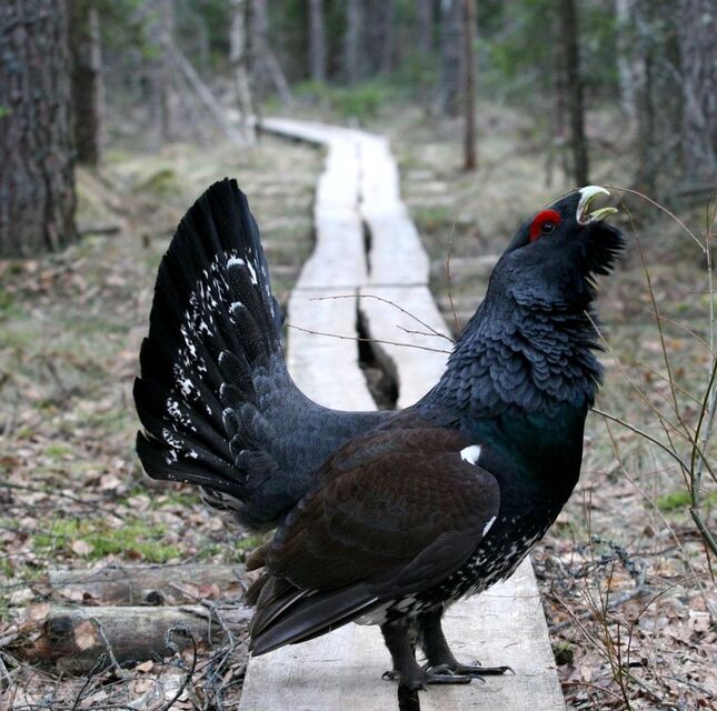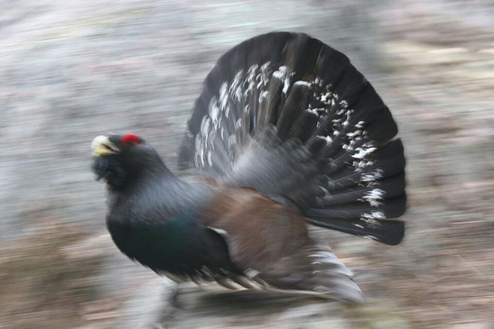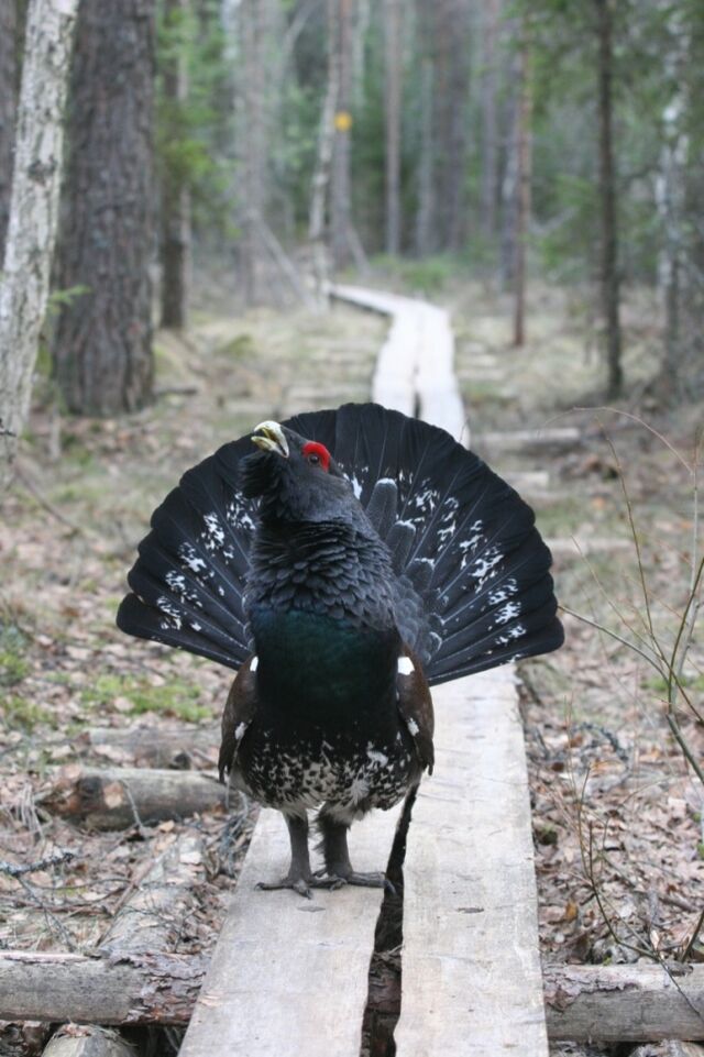 I mitten av april i år (2007) råkade jag av en slump stöta på en ensam tjädertupp på en spelplats intill en vandringsled några mil norr om Åbo i Finland. Eftersom tuppen var utled på att spela för sig själv, blev varje person som kom i närheten en lämplig spelpartner; ett idealtillfälle för fotografering. Men denna tupp tog det på allvar, och varje gång jag hukade mig ner för att fotografera i marknivå, rusade den på mig, och det gällde att springa för livet ... Dessa bilder är från tre fotograferingstillfällen, en solig eftermiddag (när jag träffade på den) och två kvällar. En kväll jagade den mig 200 m bort ur spelområdet, tills den svängde på klacken och stolt vandrade iväg.